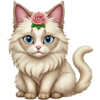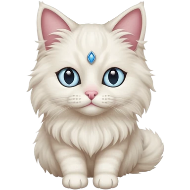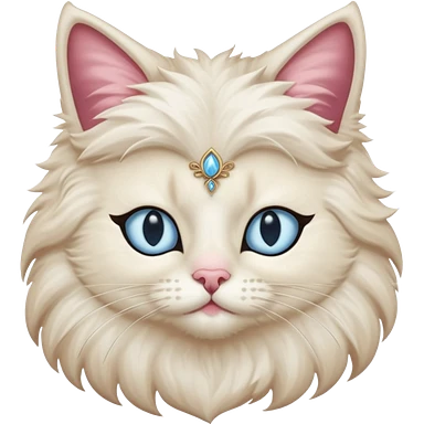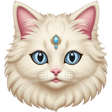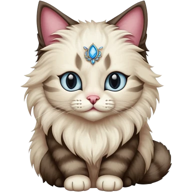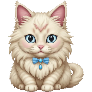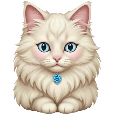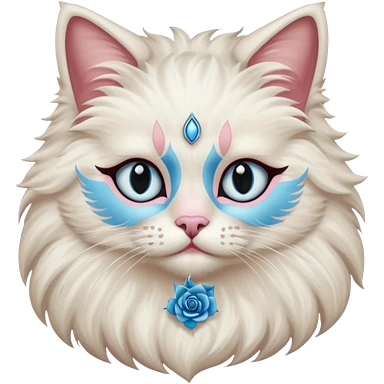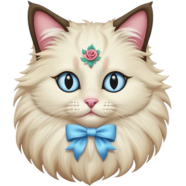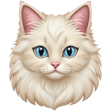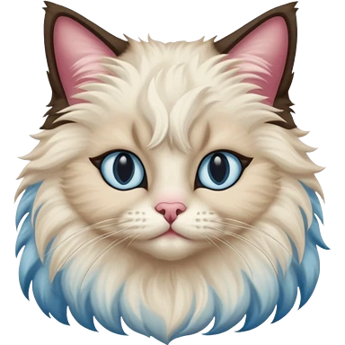 Neva masquerade cat, very fluffy, with pale blue eyes and rose nose emoji