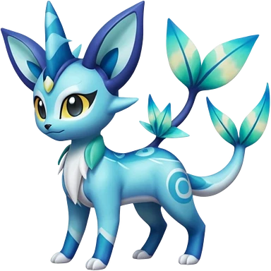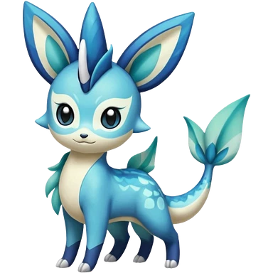 Shiny Sparkly Exotic Colorful Vaporeon-Glaceon-Amaura-Aurorus-Fakémon-hybrid-creature (full body) emoji