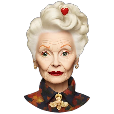 “East Asian woman with a tight sleek bun, no loose strands. Black leather jacket over a black turtleneck, silver Vivienne Westwood-style orb necklace. Red leather mini skirt, burgundy tights, red long boots. Clean, fashion-editorial style.” emoji