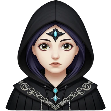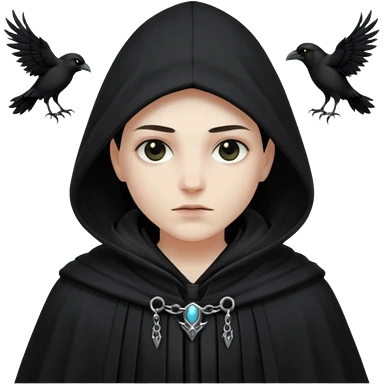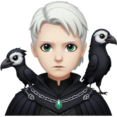 necromancer with black raven outfit white hair emoji | AI Emoji Generator