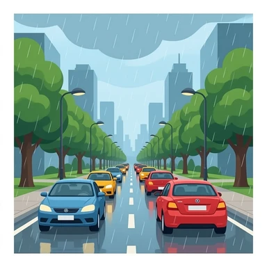 Highway full of cars trucks and vans luxury cars and delivery robots emoji
