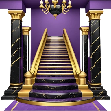 Luxurious black marble hallway stairs with gold and white accents with with violet accents emoji