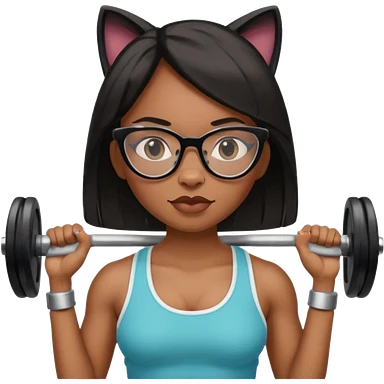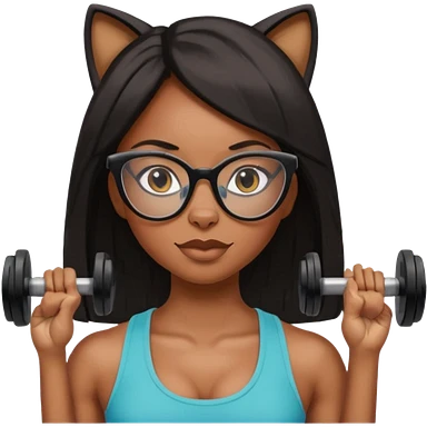 Negra,cabelo liso,óculos com armação de gato segurando peso de academia emoji | AI Emoji Generator