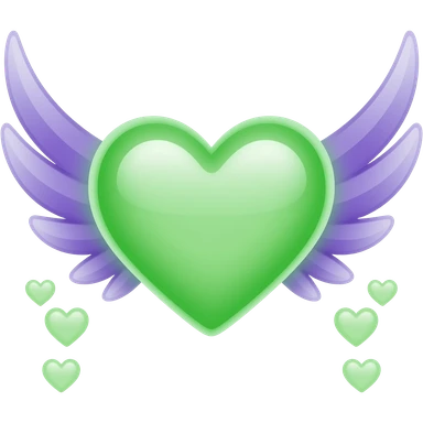 neon green and purple heart with wings emoji
