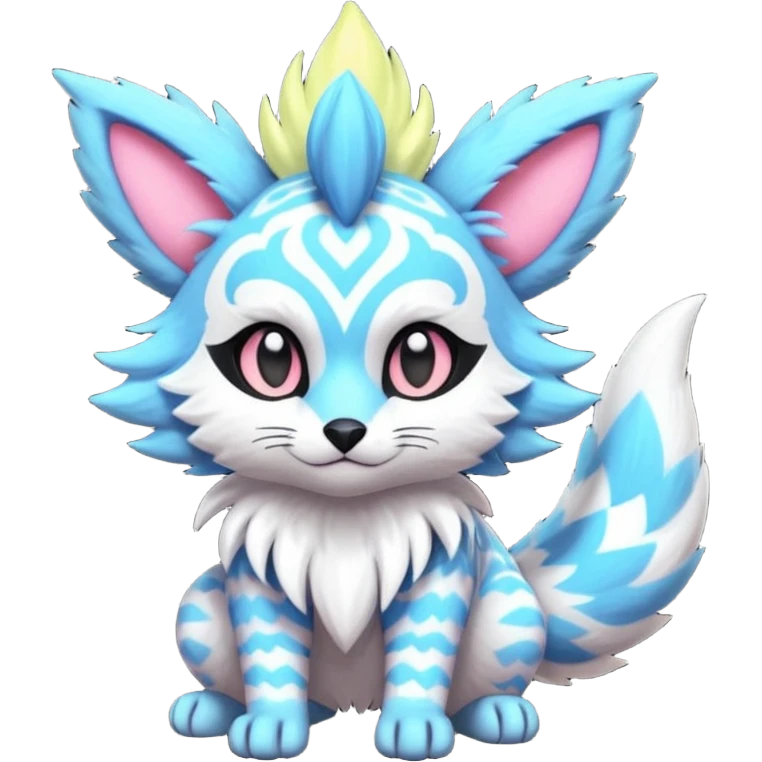 Creamy candy-themed colorful furry fluffy floofy feathery tribal marked Genet-Absol-Kyurem-Zeraora-Primagen-fusion-creature emoji