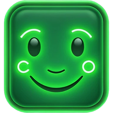 Futuristic 3D emoji made of glowing green Matrix code, digital rain background, cyberpunk neon glow, dark black backdrop, minimalist rounded face, high contrast, cinematic lighting, ultra-sharp, high resolution. emoji