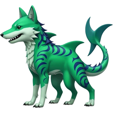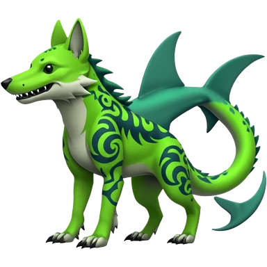 Neon-green-landhai-dog-sergal-wolf-canine, with a shark tail, emoji