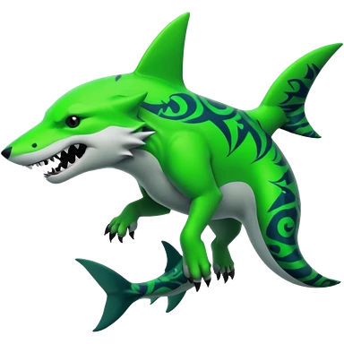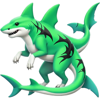 Edgy cool badass Neon-green landhai-sergal-canine, with a shark tail, with black and dark-green swirly patterns markings emoji