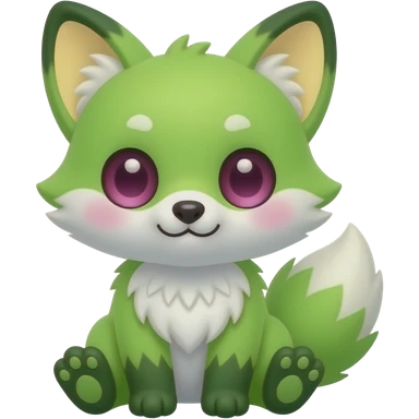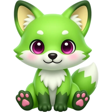 Neon-light-lime-green furry fox with white belly and white muzzle, dark-green paws, dark green ears, and magenta eyes emoji | AI Emoji Generator