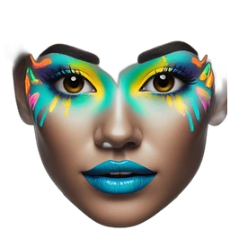 girl, asian, pale skin with pink splotches, beauty marks, eye liner, lashes, plump pink lips, red eyes, long black hair, y2k style clothes emoji