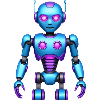 chatbot robot in gray color, with neon glow lines, blue neon glow on top left, purple neon glow on bottom right emoji