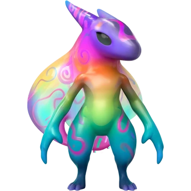 futuristic lush tropical exotic patterned swirly random-colored neon-colored Fakémon-Trico-creature (full body) emoji
