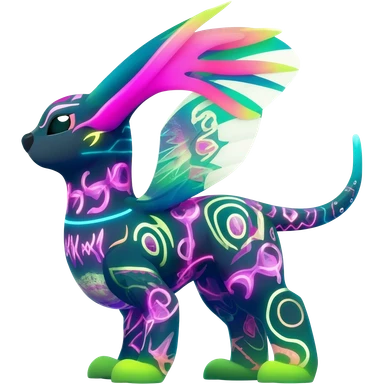 futuristic lush hyper realistic exotic patterned swirly random-colored neon-colored Fakémon-Trico-creature (full body) emoji