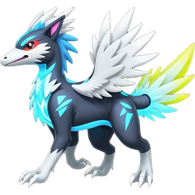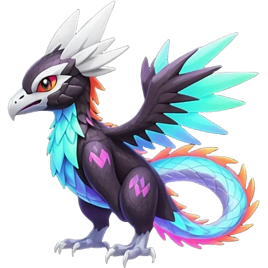 Neon Vibrant Pulsating Trail-glowing Chromatic Trico-Noivern-Silvally-fusion-hybrid emoji