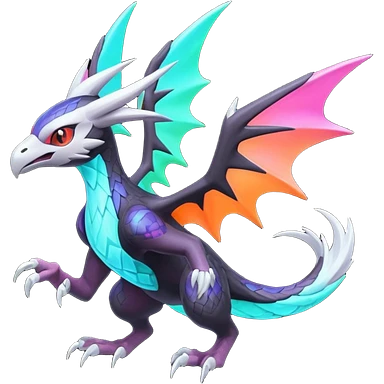 Neon Vibrant Pulsating Trail-glowing Chromatic Trico-Nargacuga-Noivern-Absol-Silvally-fusion-hybrid emoji