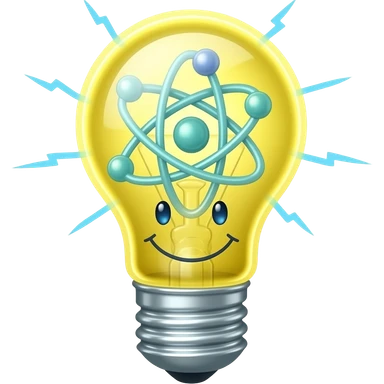 neon yellow lightbulb emoji with smiling face, rotating atom inside, chemical bubbles, electric blue... emoji | AI Emoji Generator