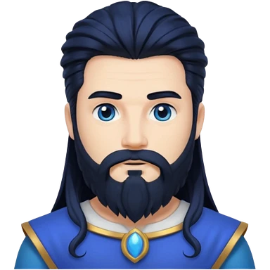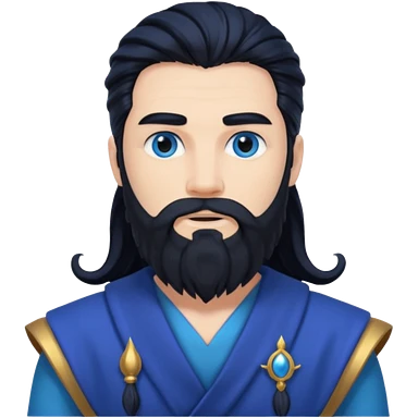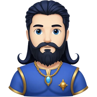 Neptune, Sea God from Rome Mythology with long jet black hair and beard, cobalt blue outfit emoji