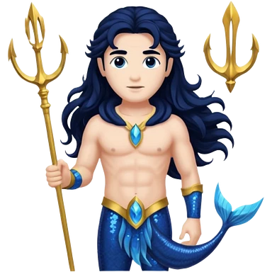 Neptune, God of Sea from Gods and Goddesses with long jet black hair, dark blue sequin outfit emoji | AI Emoji Generator