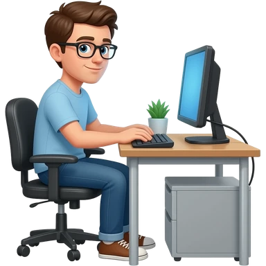 Nerd sutting on chair doing his computer desk job emoji