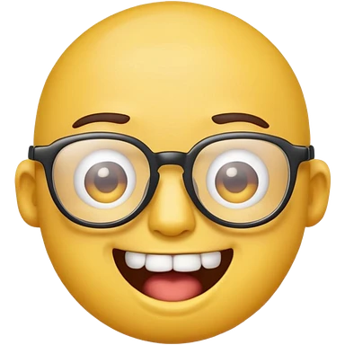 nerd emoji, classic yellow circle face, thick glasses, buck teeth, joyful emoji