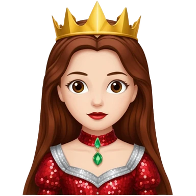 Nessarose from The Wizard of Oz with long brown hair, red sequin outfit emoji