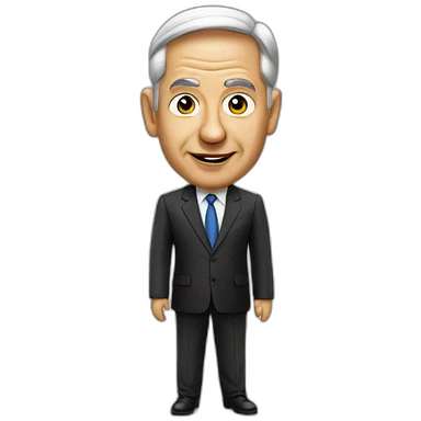 Create a highly recognizable emoji-style illustration of Benjamin Netanyahu, with simplified facial features, exaggerated expressions, and a cartoonish look, focusing on clear and iconic shapes, flat colors, and a clean vector style emoji
