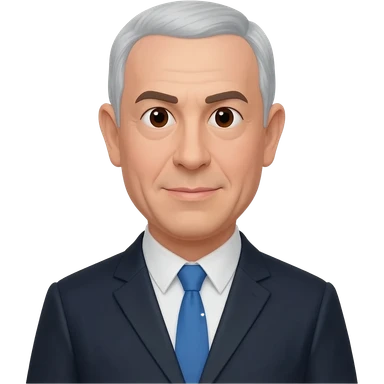 Create a highly recognizable emoji-style illustration of Benjamin Netanyahu, with simplified facial features, exaggerated expressions, and a cartoonish look, focusing on clear and iconic shapes, flat colors, and a clean vector style emoji