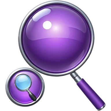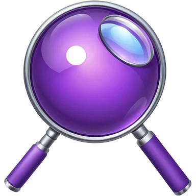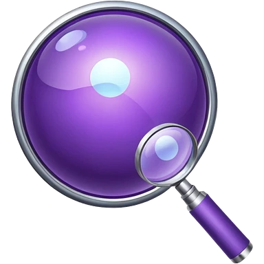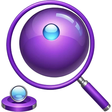 Minimal glossy purple icon of a network planet with a magnifying glass. emoji