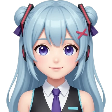 "Anime-style emoji of Neuro-Sama, the AI VTuber. Expressive, cute but slightly sinister. - Design: Purple hair, red eyes, mischievous smile. - Emotion: [выбери: happy / trolling / singing / angry / smug]. - Style: Kawaii anime emoji, clean lines, pastel colors (purple, pink, black). - Key details: Devil horns (😈), music notes (🎵), or glitch effects for 'AI' vibe. - Background: Transparent or simple gradient. - No realistic shading, pure emoji-style." emoji