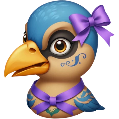 bird with piercings on beak and excessive face tattoos and ribbon two eyes emoji