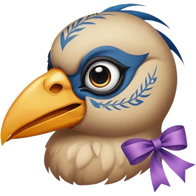 bird with piercings on beak and ribbon two eyes emoji