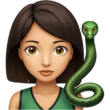 Femme brune yeux marron avec une coupe carré noir , femme couleur de peau typé, avec un cobra a côté , emoji
