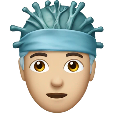 neurosurgeon wearing surgical cap and mask holding brain model emoji