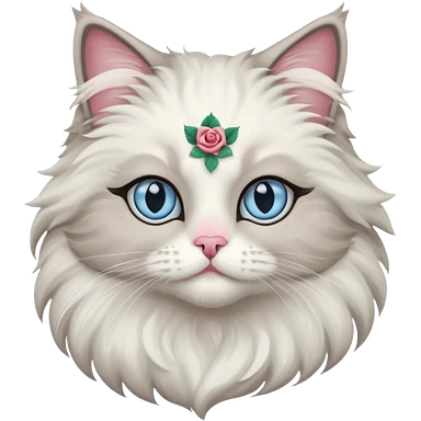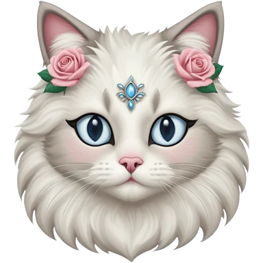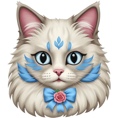 Neva masquerade cat, very fluffy, gray and white, with blue eyes and pink nose emoji | AI Emoji Generator