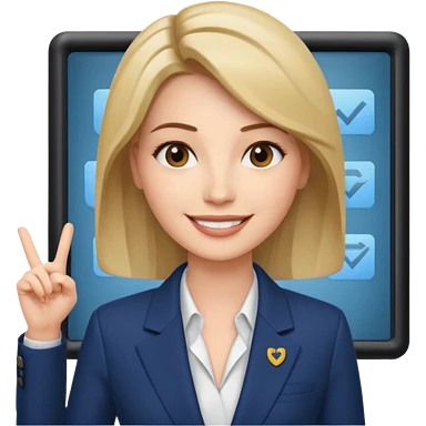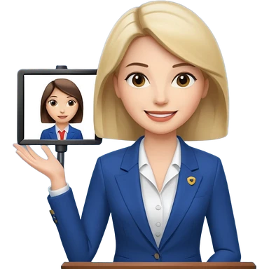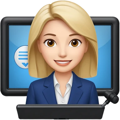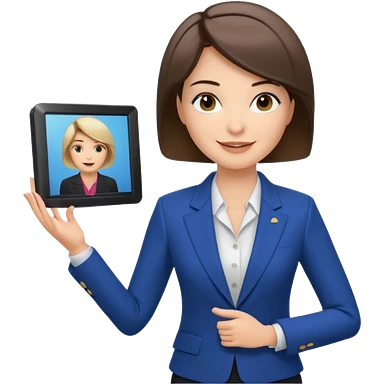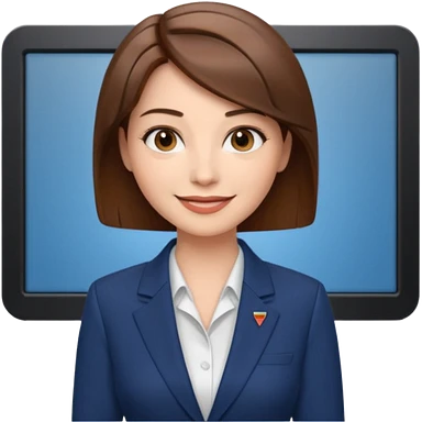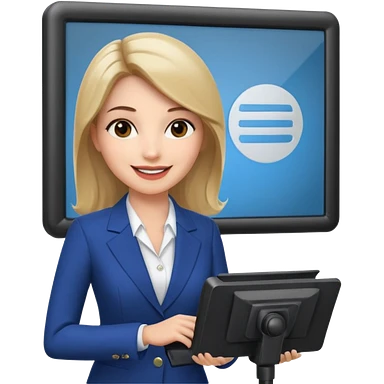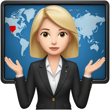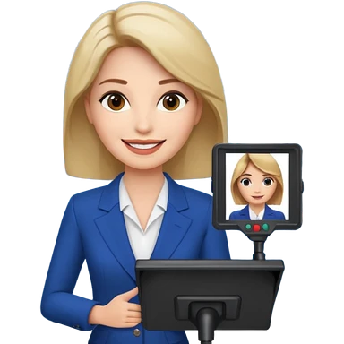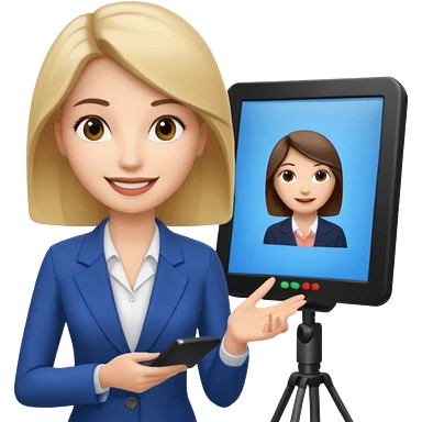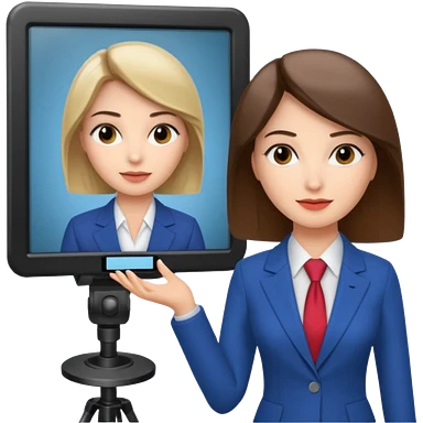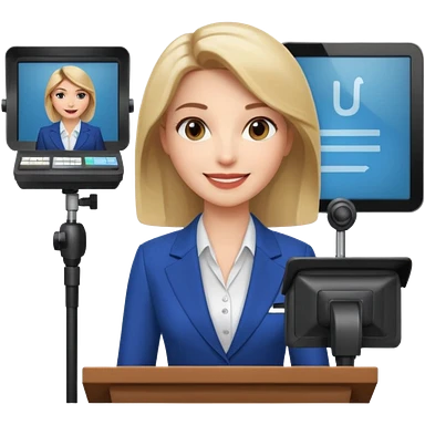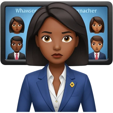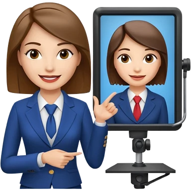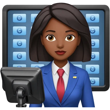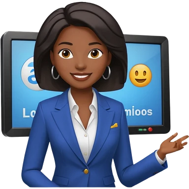 news anchor black skin woman, with a screen with a prompter in front of her emoji