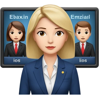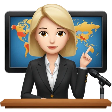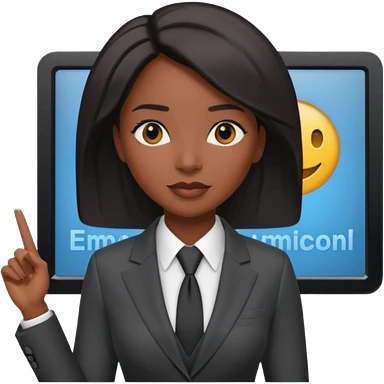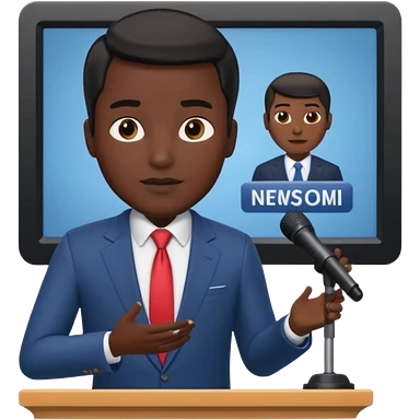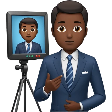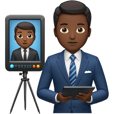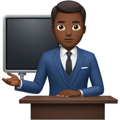 news anchor black skin man, with a screen with a prompter in front of her emoji