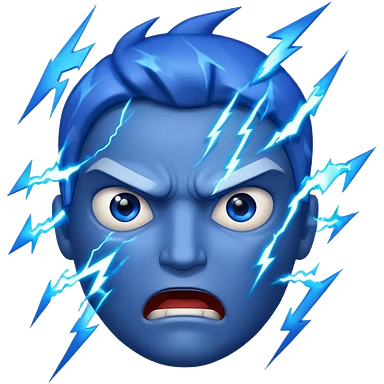 Rayos, centellas y fuego con expresiones de furia extrema azul emoji