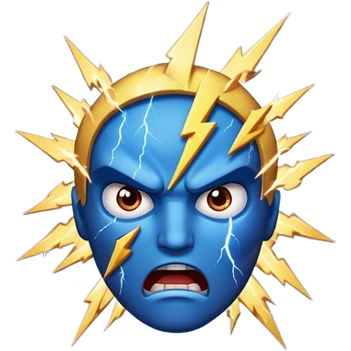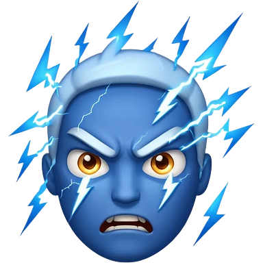 Rayos, centellas y estrellas en una cara color azul con expresiones de furia emoji