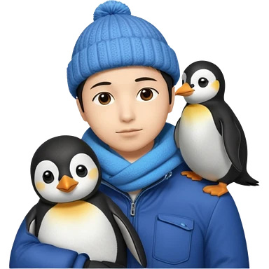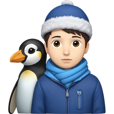Winter penguin lying on Akashi Seijūrō’s shoulder with Akashi wearing winter clothes emoji