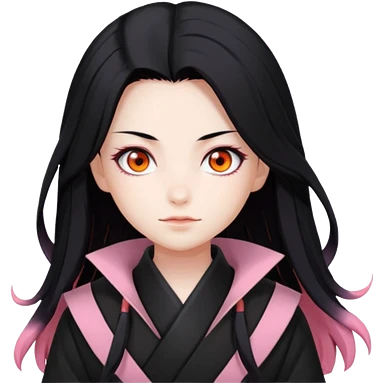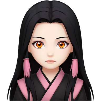 Nezuko with long black hair with orange tips, pink eyes, bamboo muzzle in mouth emoji