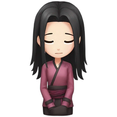 Nezuko with long black hair with orange tips, pink eyes, bamboo muzzle in mouth emoji