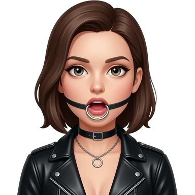 Nice girl with leather clothing and open mouth bdsm ringgag emoji
