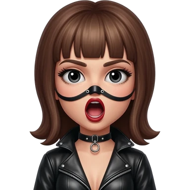 Nice girl with leather clothing and open mouth bdsm ringgag emoji