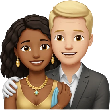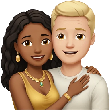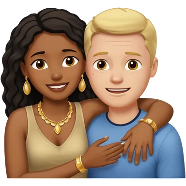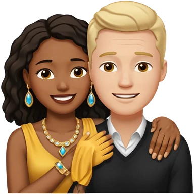 interracial couple. Black smiling woman with nice jewelry. White man crying with his arm around her shoulder. emoji
