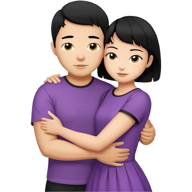 buff Asian Man black hair hugging girl with black pixie cut emoji
