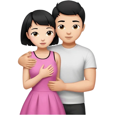 buff korean Man black hair hugging girl with black pixie cut emoji