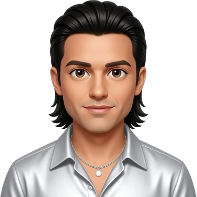 Howie Dorough from Backstreet Boys with brown eyes, dark brown hair, white metallic shirt, silver necklace emoji