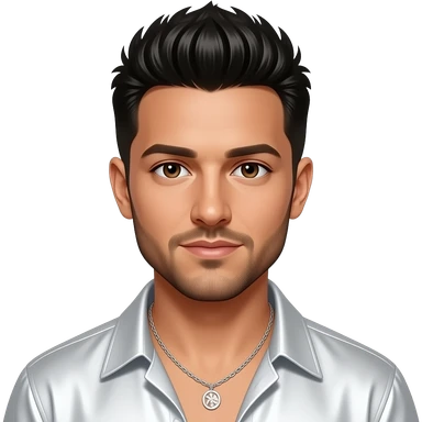 AJ McLean from Backstreet Boys with brown eyes, black 90s mohawk hair and short beard, white metallic shirt, white necklace emoji