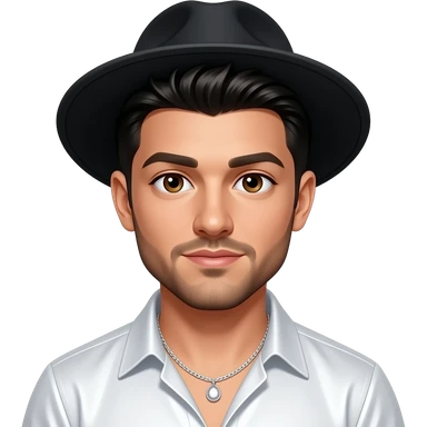 AJ McLean from Backstreet Boys with brown eyes, black hair and short beard, black hat, white metallic shirt silver necklace with short earrings emoji