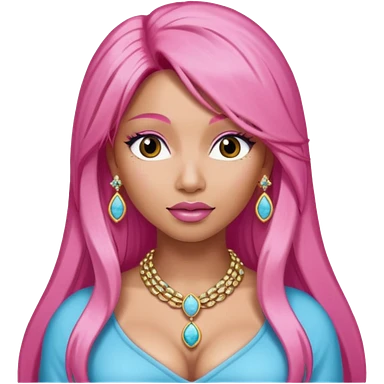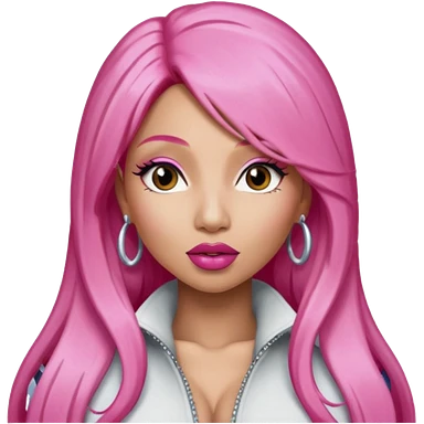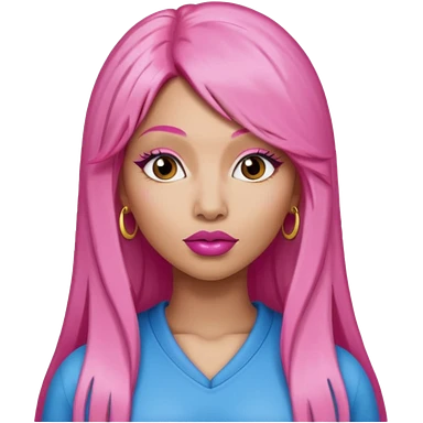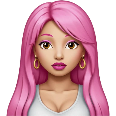 Nicki Minaj long black hair with pink highlights, pink outfit emoji